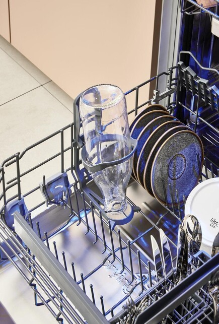 Diese Vorrichtungen sorgen dafür, dass hohe Gefäße stabil stehen. Spezielle Düsen sprühen das Wasser bis zum Flaschenboden hoch und erreichen so auch den Boden hoher, schlanker Gläser. Das ist auch ideal für Babyflaschen, schmale Vasen oder Karaffen.