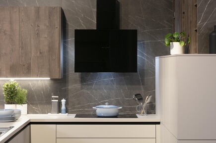 Smartglas-Fronten bestechen vor allem bei grifflosen Küchenfronten durch ihre hochwertige Optik, Stabilität und auch Pflegeleichtigkeit. Seine Anti-Finger-Print-Eigenschaft reduziert Fingerabdrücke und verringert dadurch den Reinigungsaufwand. In matter Ausführung schafft das samtige Design Wohlfühlatmosphäre und fasst sich wunderbar an.